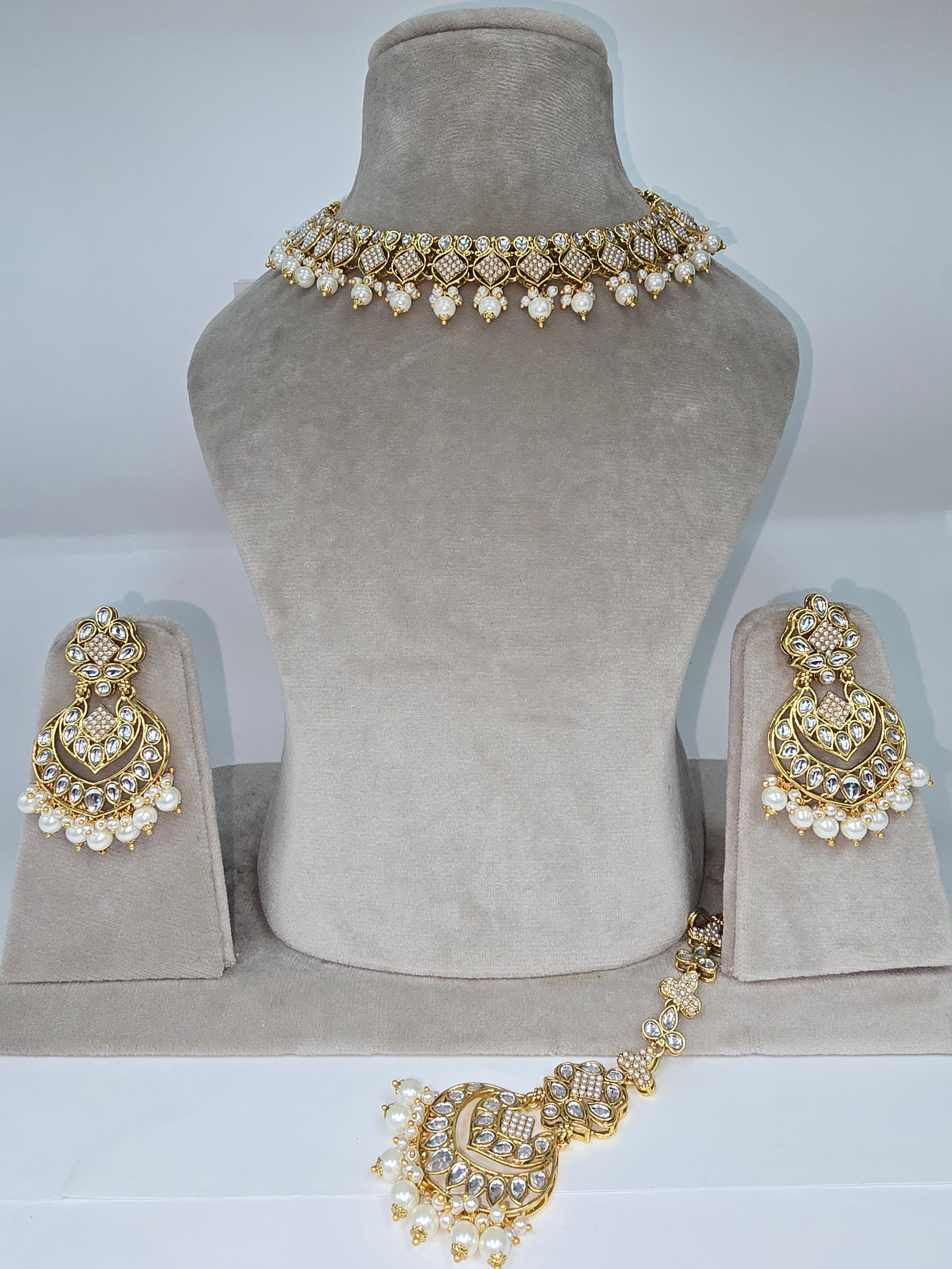 Cream and multi coloured Asian designer sets with earrings n tikka