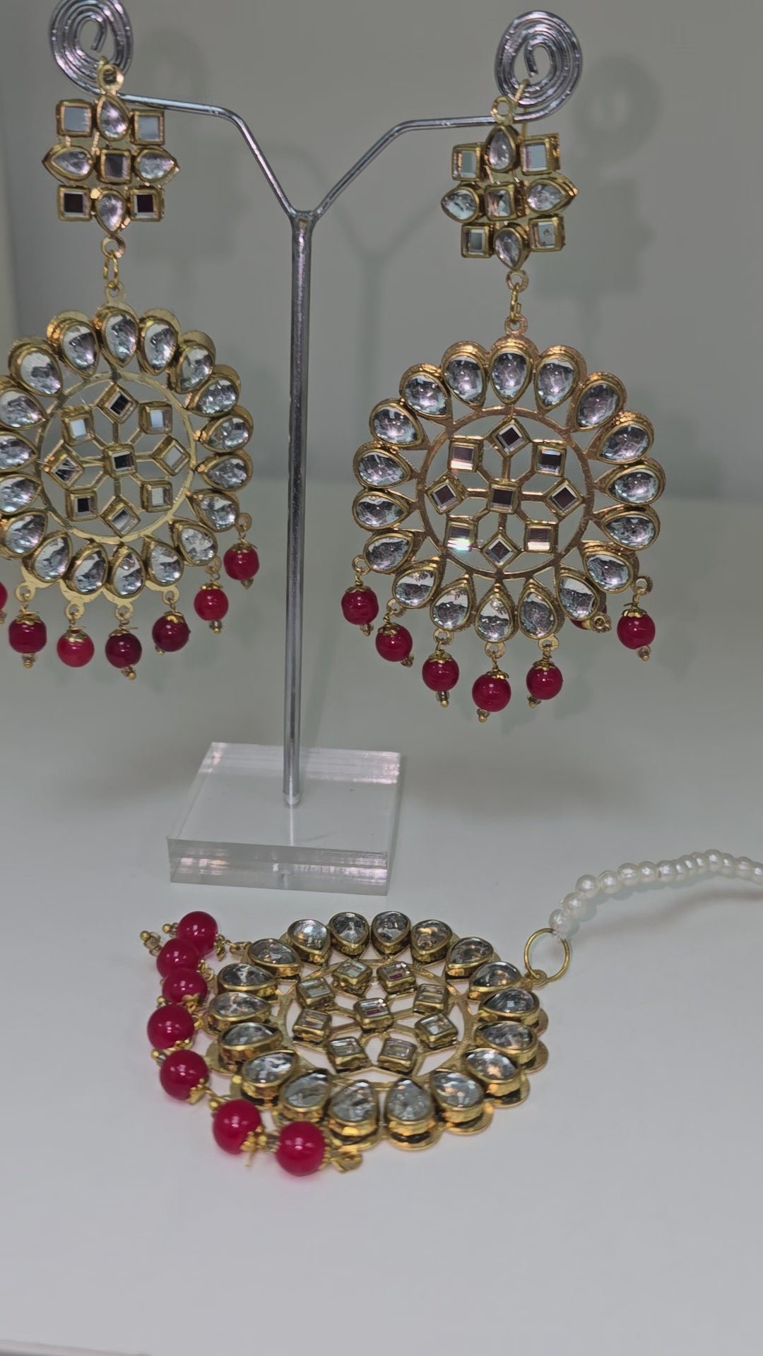 This elegant Fancy Kundan Tikka and Earrings Set features intricate kundan work in 2 stunning colors. Perfect for adding a touch of sophistication and traditional charm to any outfit. Elevate your look with this beautiful set that exudes style and class.