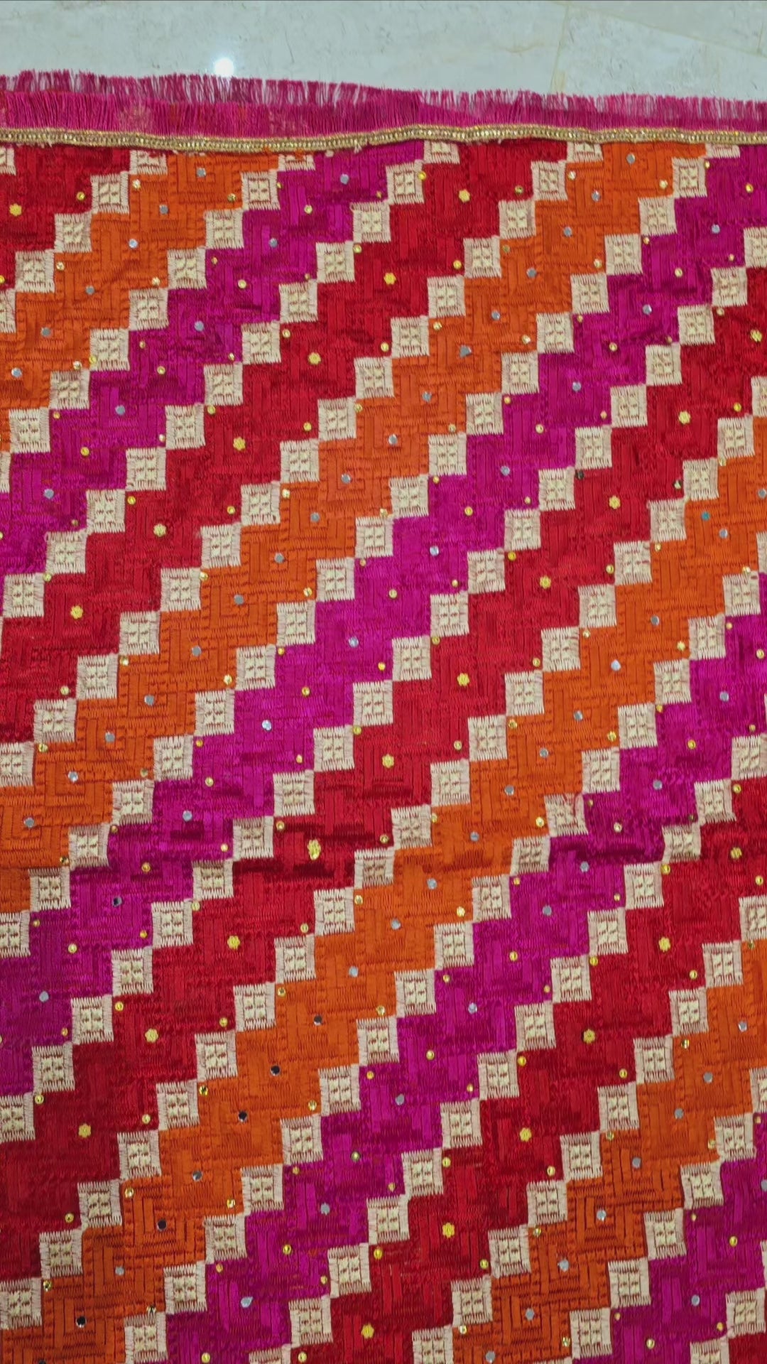 Enhance your wardrobe with our intricate Fancy Phulkari, adorned with stunning mirror work. Handcrafted with precision, this exquisite piece of art is the perfect accessory to elevate your plain suits. Add a touch of traditional elegance to your style.