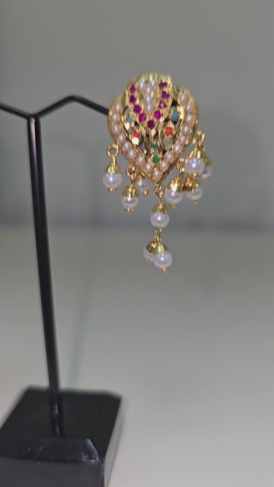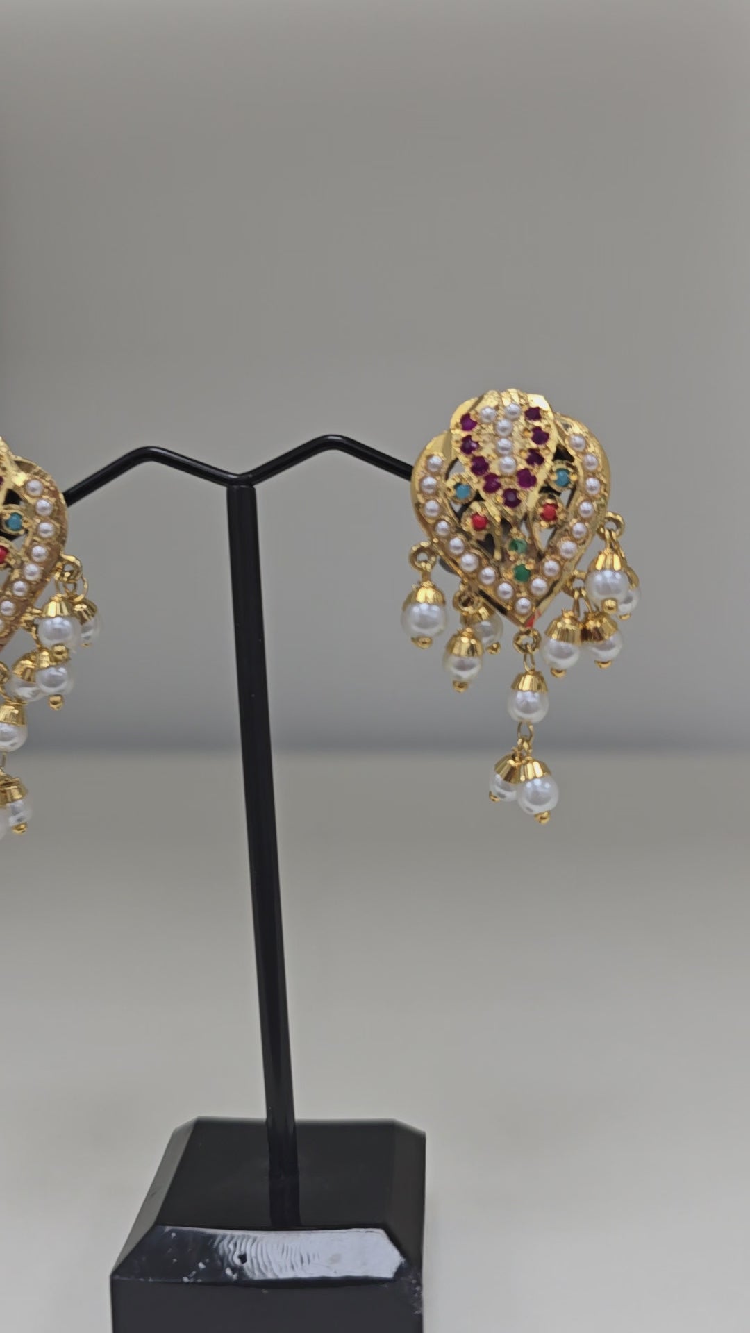 These stunning gold-plated jadau earrings add a touch of elegance to any outfit. Crafted with meticulous attention to detail, they are the perfect accessory for any occasion. With their timeless design and beautiful finish, these earrings are sure to make a statement.