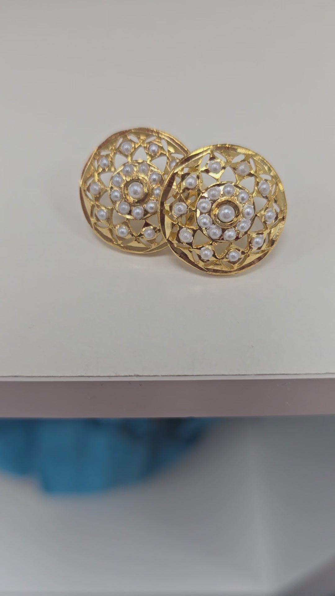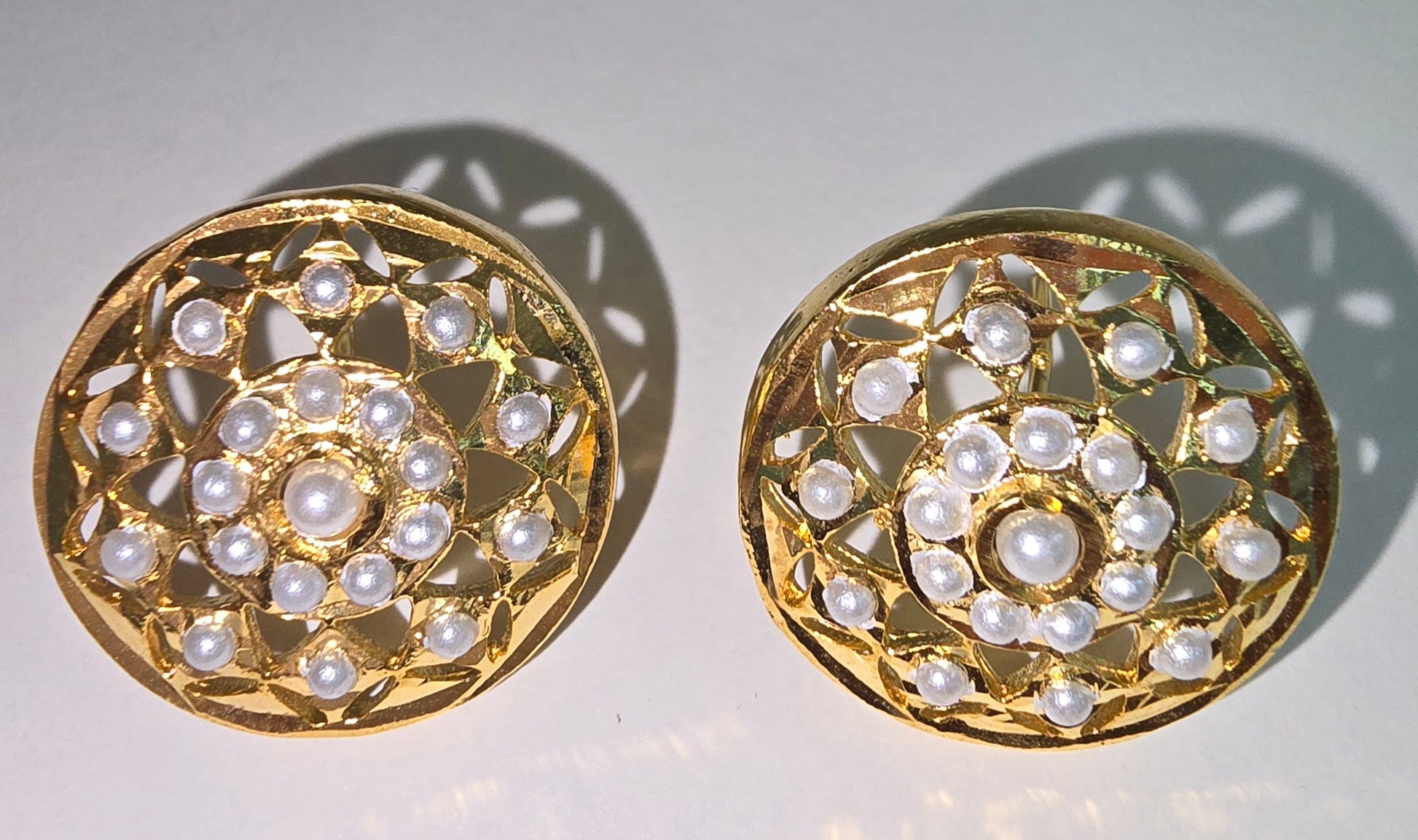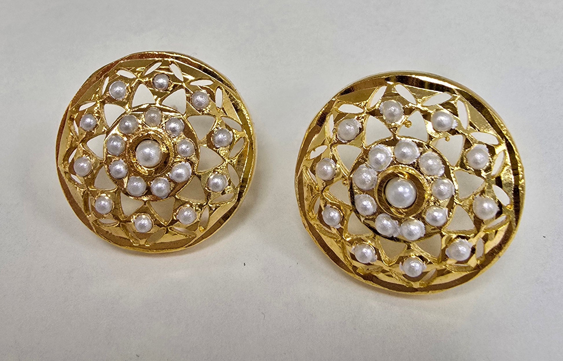 As an expert in the industry, these gold plated jarau earrings are crafted with high-quality materials to ensure longevity and shine. With a beautiful touch of gold colour and white pearls, these earrings are perfect for any occasion and will elevate any outfit. Enjoy the benefits of a luxurious and versatile piece.