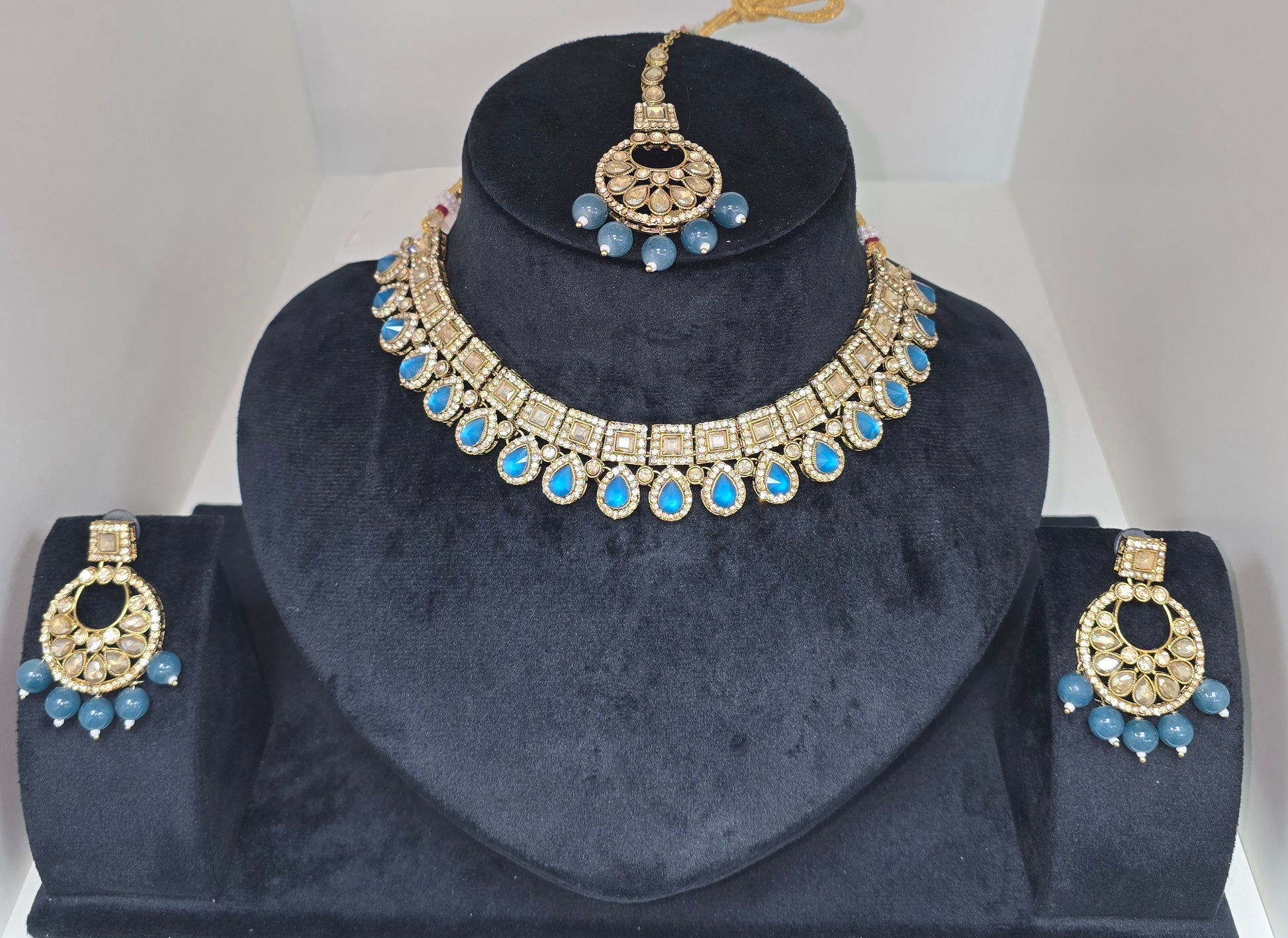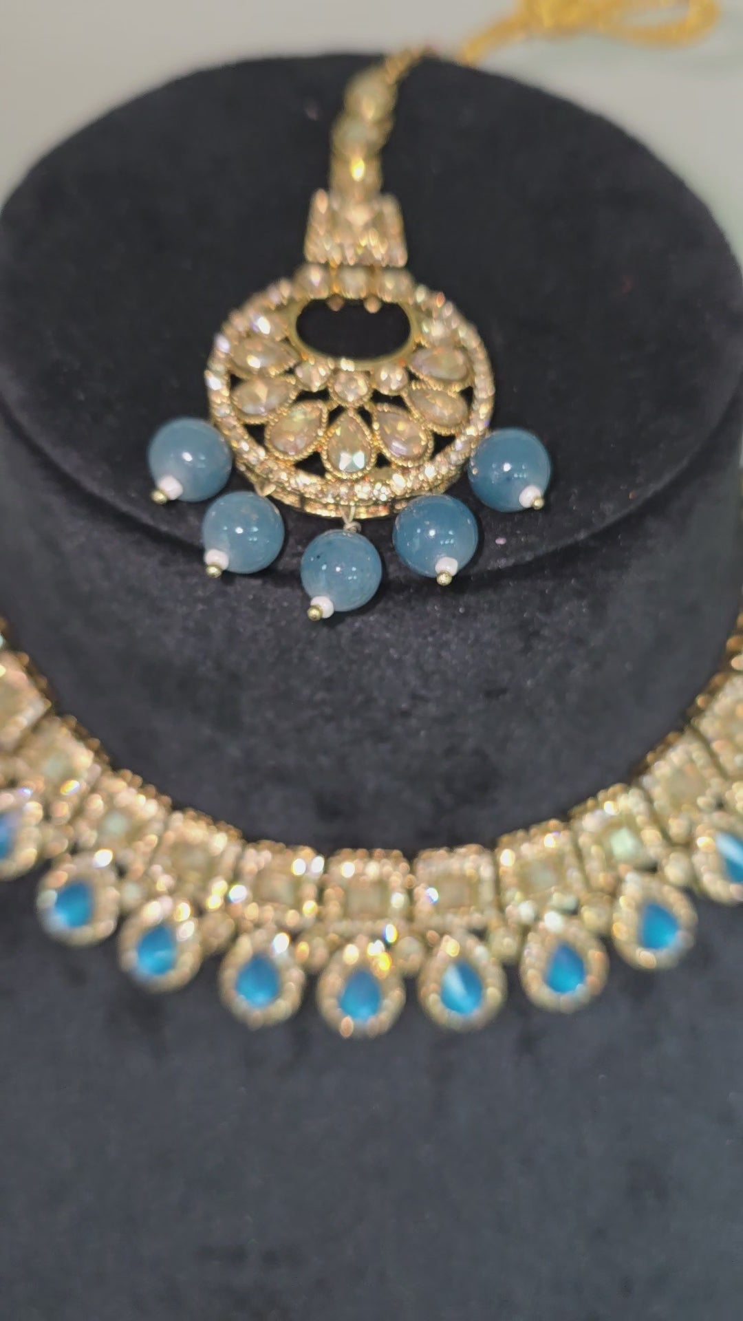 Experience elegance and sophistication with our light partywear set. This set includes stylish earrings and a traditional tikka, perfect for completing any party look. Enhance your outfit with this must-have accessory set that will add a touch of glamour to any occasion.