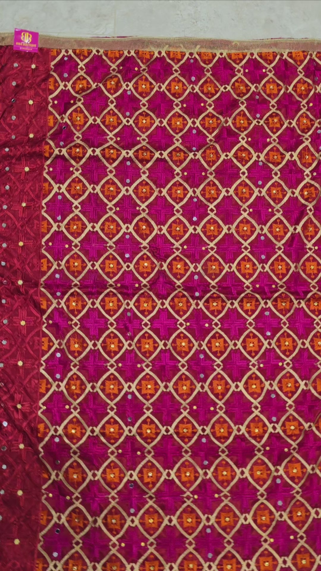 This stunning Phulkari with mirror work is a true testament to the skilled craftsmanship of its makers. Each piece is intricately designed with vibrant colors and detailed mirror work, creating a unique and eye-catching accessory. Enhance your wardrobe with this beautiful piece and make a statement wherever you go.