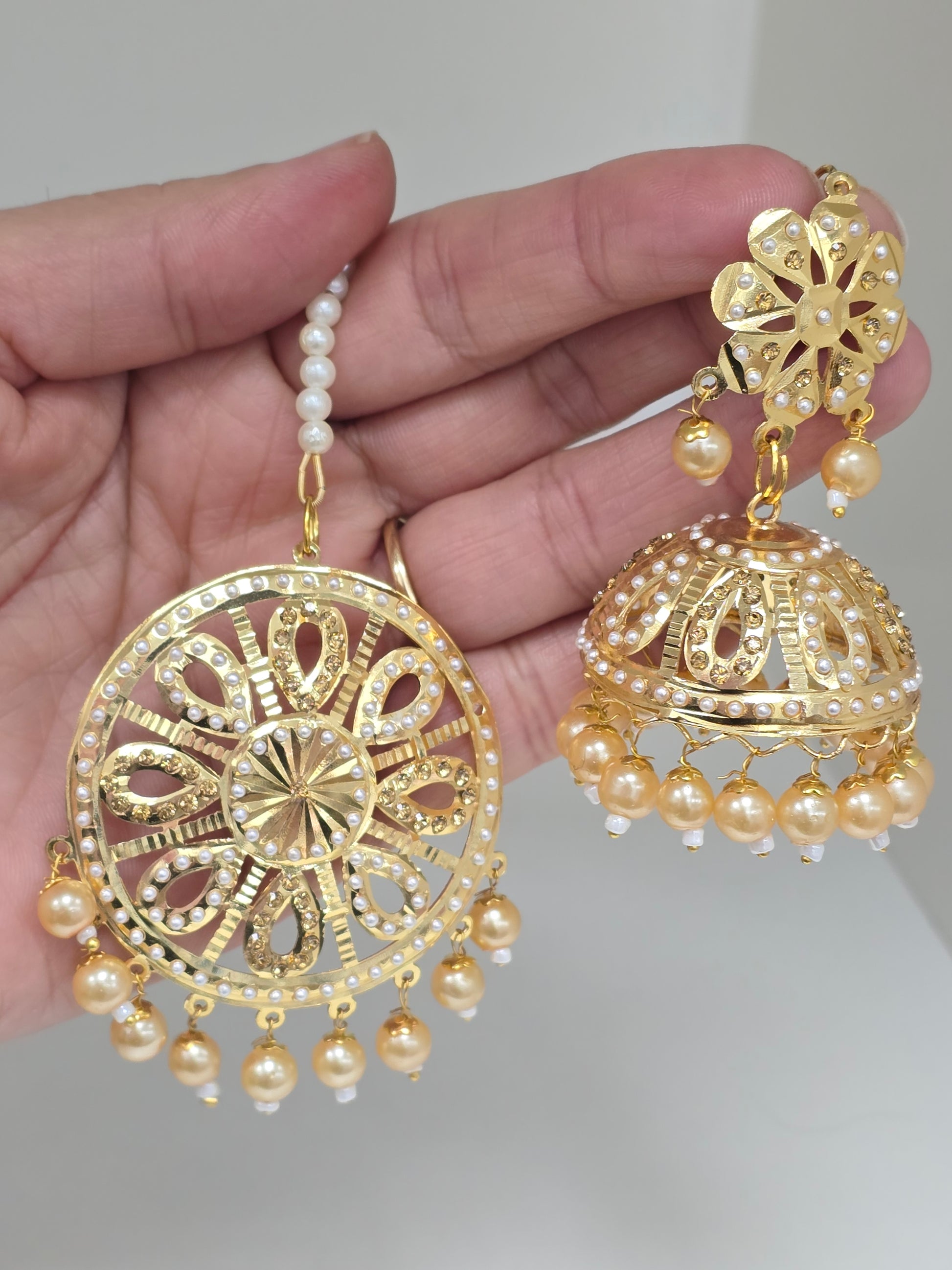 Enhance your traditional look with our exquisite Jarau Tikka and jhumka set. Handcrafted with precision, this set is made with high-quality materials that will add a touch of elegance to your attire. Complete your ensemble with this stunning set and make a statement at any occasion.